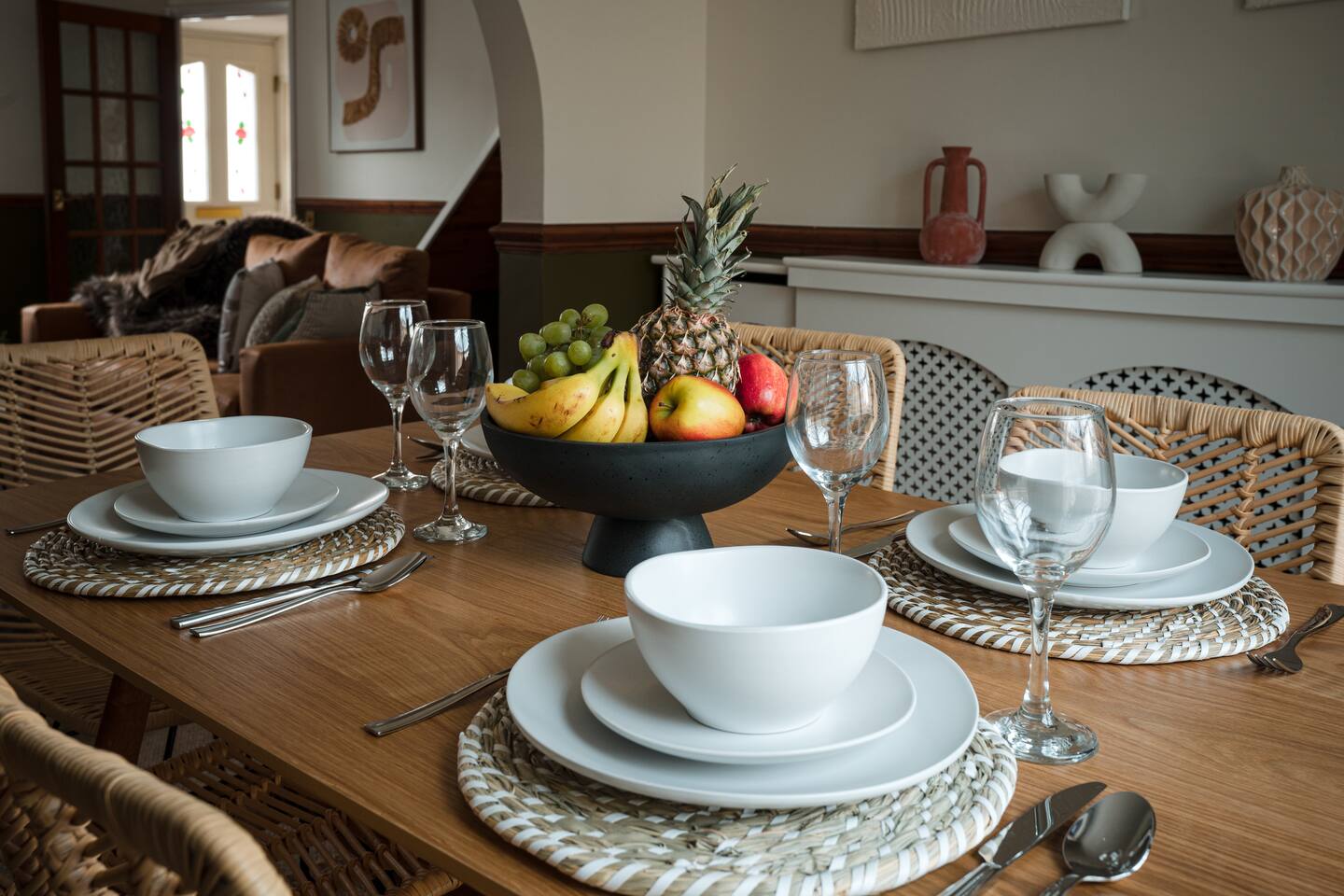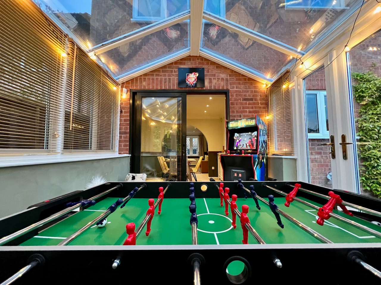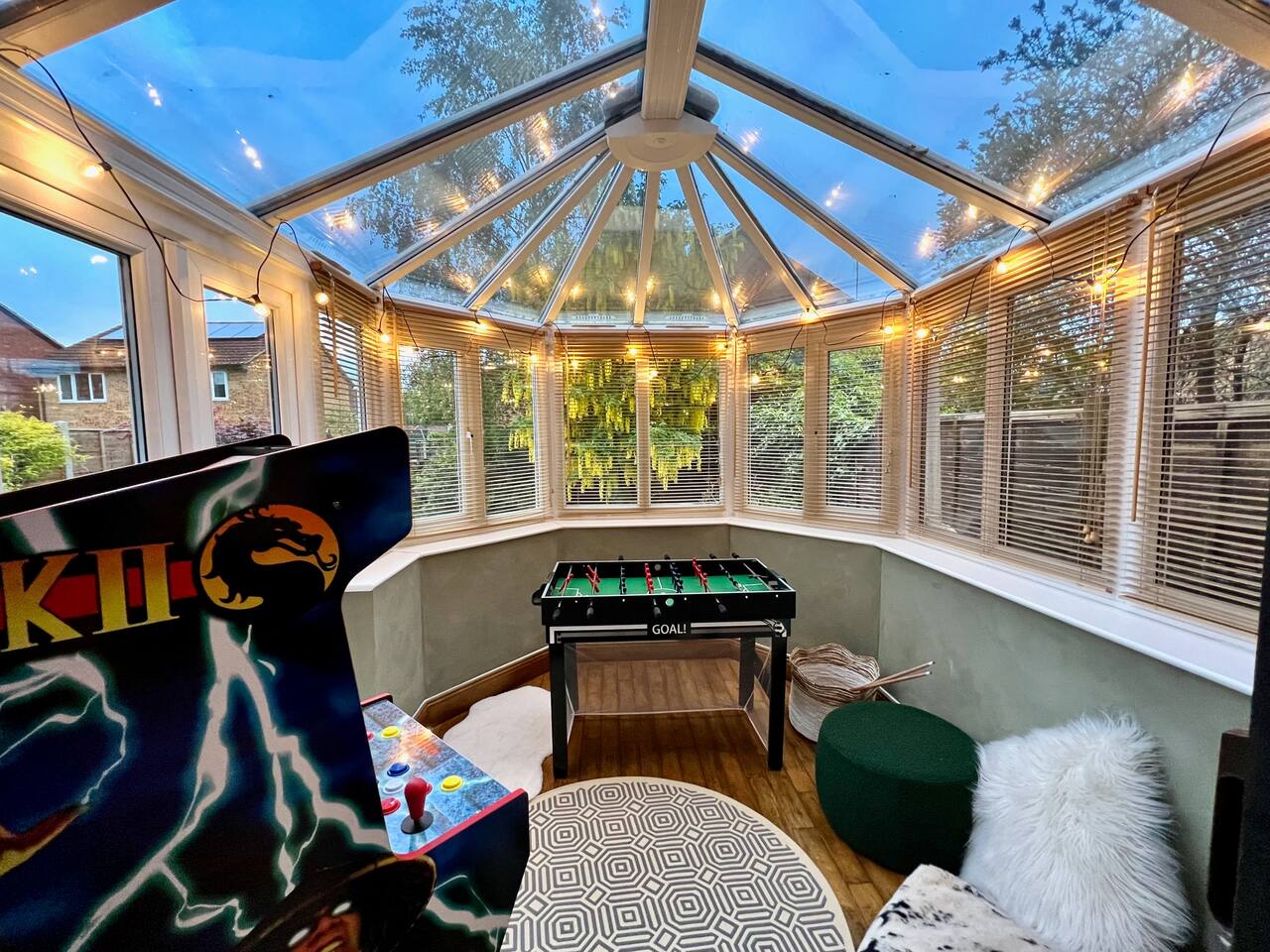 Welcome to our 4 Bedroom home situated on the very edge of the Cotswolds. The house accommodates up to 10 guests. The private driveway at the front provides easy parking for 2 cars and 3 at a squeeze. The frontage of the house is built to a mock Tudor style with beams and double glazed leaded windows. As you enter through the front door into the hallway the stairs are in front of you and a door to the right opening on to a cozy lounge with 2 sofas (one is a very comfortable sofa bed for 2 extra guests) and an armchair comfortably seating 7 people with other seating provided in the cupboard in the utility room and games room. Unwind with a 55" Smart TV & PS5 for gaming enthusiasts with loads of legendary games installed, including Diablo IV, EAFC2024, Street Fighter 6 and more, or just kick back and watch a movie - Netflix is signed in and ready for you to use on the TV - just hit the "Netflix" button on your remote. Through the lounge is a dining room with an 8 seater dining table. Beyond this the conservatory has been turned into a small games room where you can challenge friends with table football and a retro Mortal Kombat arcade machine. There are also a variety of other board games included too. Ideal for children to play whilst letting the adults have a separate area to relax. Doors from the games room also lead out into the garden. Off the lounge are 2 doors one leading to the utility room/laundry area containing a washing machine for guest use and a downstairs bathroom containing a toilet and a small sink, the other leading to the kitchen. The kitchen is fully equipped for all your cooking needs with pots and pans, crockery and glasses and cutlery. As well as a 5 burner range cooker with wok burner, 2 ovens and grill. A small breakfast bar provides seating for 2 and is ideal to look at the well established planted garden with trees and shrubs. A door leads out to the garden and hot tub from the kitchen. The garden is enclosed and is your own private green and lush sanctuary. It features a patio set with cushions and additional seating stored in the large cupboard in the utility room. There is a small Lay-Z-Spa hot tub in the garden that accommodates up to a maximum of 4 guests at a time and with the extending parasol above with the twinkly lights is a great place to relax and soak your cares away. Upstairs, there are 4 bedrooms and the main bathroom. The main bathroom contains a bath, a separate shower cubicle, toilet and sink. The master bedroom contains a king size bed and contains an ensuite with shower, toilet and sink. Bedrooms 2 & 3 contain 2 single beds, and bedroom 4 contains a small double bed. Guest access You are renting an entire house situated on a quiet, pleasant housing estate. The home has everything you need for a self-catering experience. Stream, work, or game seamlessly with ultra-fast full fibre internet throughout. Keys to the property are located in the key safe box and the code for this is issued automatically via message shortly before your check-in time. Hot Tub Rules & Information: 💦 When using the hot tub please be mindful of our neighbours. During quiet times 10pm - 8am please keep noise to an absolute minimum to avoid disturbing our lovely neighbours. 💦When using the bubble massage feature heat is lost to the air at about 1.5 degrees C per hour. At the end of each stay it is returned to 28C. Upon arrival we recommend turning up to 40C. It will reach ideal temperature after about 4 hours. 💦When heating the hot tub prior to use, the supplied covers including the thermal cover should be in place. Without the covers, the hot tub will not heat up! Other Details to Note: 🚗 Parking: Our home has a driveway that fits 2 cars side-by-side. Free on-street parking is also available opposite. ☕ Complimentary Amenities: We provide sachets of tea, coffee, and sugar, as well as Nespresso-style pods. We also provide salt, pepper, oil, foil and cling-film for guests. 🛌 Bedding and Towels: Crisp, white, freshly laundered 100% cotton bed linen is provided along with 2 pillows per guest. Each guest receives 1 bath towel and 1 hand towel. A shower mat is provided in each bathroom. 🚿 Toiletries: shower gel and shampoo, hand soap, hand & body lotion, and toilet paper are provided. 🐶 We are pet-friendly for well behaved pets but do charge for any damage or excessive cleaning required so please clean after your pet and manage them responsibly. 🧹 Housekeeping Services: For stays longer than 7 nights, we offer complimentary housekeeping services. If you need additional items or housekeeping for shorter stays, please contact us for availability and pricing. ⏰ Check-In and Check-Out: Our check-in and check-out times are listed in the property information (4pm Check-in and 10am Check-out). We will do our best to accommodate early check-ins and will update you on the day if this is possible. For late check-outs, please contact us directly for pricing and availability. We look forward to making your stay comfortable and memorable! 😊🏠🌟 Other things to note 🛌There's plenty of space for everyone to have their own little sanctuary. While the house can technically sleep up to 10 people, we recommend a group size of 5-7 for optimal comfort. 💼 Business-Friendly Whether you're planning a family adventure, friends' reunion, or need a comfortable base for work contracts, this property delivers comfort, convenience, and unforgettable memories. No smoking anywhere inside the property. This is a NO shoes house. Please take your shoes off at entry thank you. The indoor wood burner seen on the pictures is just a decoration. There is a security camera outside on the front of the property. There is also a monitored noise sensor fitted inside the house in the lounge and on the patio area. It cannot hear or record conversations but detects noise on a decibel level. It's set to a relaxed level so you can have fun without worrying. But excessive high levels of n